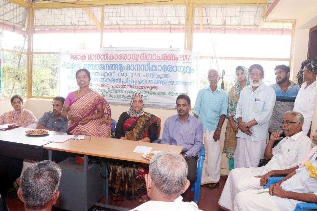 വെള്ളമുണ്ട: ഭാരതീയ ചികിത്സാവകുപ്പിന്റെ ആഭിമുഖ്യത്തിൽ വെള്ളമുണ്ട ഗ്രാമപഞ്ചായത്തിൽ വൃദ്ധജനങ്ങൾക്കായുള്ള പകൽവീട്ടിൽ വെച്ച് രോഗ മാനസികാരോഗ്യ ദിനം ആചരിച്ചു .വെള്ളമുണ്ട ഗ്രാമപഞ്ചായത്ത് പ്രസിഡന്റ് തങ്കമണി ഉൽഘടനം ചെയിതു .നാരായണൻ മംഗലശ്ശേരി സ്വാഗതവും സക്കീന കുടുവ (സ്റ്റാന്റിംഗ് കമ്മിറ്റി ചെയർപേഴ്സൺ വെള്ളമുണ്ട ഗ്രാമപഞ്ചായത്ത്) അധ്യക്ഷതയും വഹിച്ചു . ഡോ എൻ സുരേഷ് കുമാർ (എസ് എം ഒ ജി എ എച്ച് -പാതിരച്ചാൽ ) മുഖ്യപ്രഭാഷണം നടത്തി .ജി എ എച്ച് പാതിരച്ചാൽ സി എം ഒ ഡോ .ശ്രീലത എസ് ന്റെ നേതൃത്വത്തിൽ വയോജനങ്ങളും ആരോഗ്യവും എന്ന വിഷയത്തിൽ ചർച്ച ക്ലാസ് നടത്തി . എം ബി ബാലൻ നായർ ,വി പി മാധവൻ നായർ എന്നിവർ ചർച്ചയിൽ പങ്കെടുത്തു .ഡോ. എം ബി ഫിലിപ്പ് (മെഡിക്കൽ ഓഫീസർ ജി എ ഡി വെള്ളമുണ്ട ) നന്ദി രേഖപ്പെടുത്തി