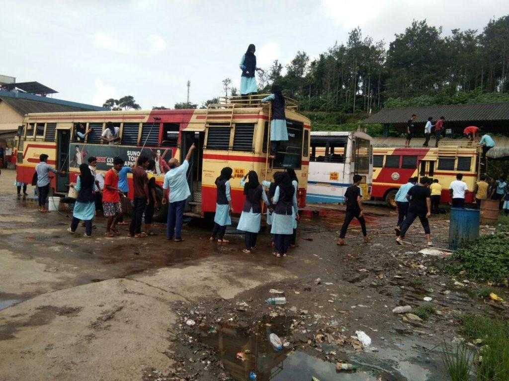 അവധി ദിവസം ആനവണ്ടികൾ വൃത്തിയാക്കി എൻ.എസ്.എസ്.വളണ്ടിയർമാർ