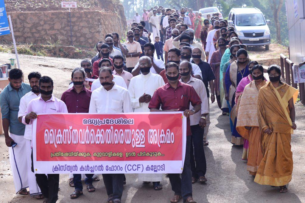 മാനന്തവാടി: മധ്യപ്രദേശിലെ ക്രൈസ്തവർക്ക് നേരെയുള്ള അക്രമത്തിൽ പ്രതിഷേധിച്ച്  ക്രിസ്ത്യൻ കൾച്ചറൽ ഫോറം കല്ലോടിയിൽ  വായ് മൂടി കെട്ടി പ്രകടനം നടത്തി. മാനന്തവാടി രൂപതയുടെ വിവിധ ഭാഗങ്ങളിൽ ക്രിസ്ത്യൻ കൾച്ചറൽ ഫോറം പ്രവർത്തകർ പ്രതിഷേധ പ്രകടനം നടത്തി.
