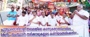 കല്പ്പറ്റ:എല്.ഡി.എഫ് സര്ക്കാറിന്റെ ചുമട്ട് തൊളഴിലാളി ദ്രോഹ ഓര്ഡിനന്സ് പിന്വലിക്കുക,രൂക്ഷമായ വിലക്കയറ്റം തടയുക,ചുമട്ട്തൊഴിലാളി ക്ഷേമനിധി ബോര്ഡിലെ ഫണ്ട് സര്ക്കാരിലേക്ക് മാറ്റാനുള്ള തീരുമാനം പിന്വലിക്കുക,1978-ലെ ചുമട്ട്തൊഴിലാളി നിയമം കുത്തക തൊഴിലാളികളുടെ താല്പര്യം സംരക്ഷിക്കാന് വേണ്ടി പാടെ മാറ്റിമറിക്കുന്ന നാലാം വകുപ്പ് ഒന്പത്-എ,ഒന്പത്-ബി,എന്നീ ഉപവകുപ്പുകള് പൂര്ണ്ണമായും പിന്വലിക്കുക തുടങ്ങിയ ആവശ്യങ്ങളുന്നയിച്ചുകൊണ്ട് കേരള ചുമട്ട്തൊഴിലാളി ഫെഡറേഷന് (ഐ.എന്.ടി.യു.സി)വയനാട് ജില്ലാ കമ്മിറ്റി കലക്ടറേറ്റിലേക്ക് മാര്ച്ചും ധര്ണ്ണയും നടത്തി.ധര്ണ്ണ സമരം ഐ.എന്.ടി.യു.സി.ജില്ലാ പ്രസിഡന്റ് പി.പി.ആലി ഉദ്ഘാടനം ചെയ്തു.ചുമട്ട്തൊഴിലാളി ഫെഡറേന് ജില്ലാ പ്രസി. വി.എന്.ലക്ഷ്മണന് അധ്യക്ഷത വഹിച്ചു.സി.പി.വര്ഗ്ഗീസ്,പി.കെ.കുഞ്ഞിമൊയ്തീന്,എ.പി.കുര്യാക്കോസ്,ടി.എ.റെജി,പി.എന്.ശിവന്,പി.എം.ഷംസുദ്ദീന്,ഉമ്മര് കുണ്ടാട്ടില്,ഗോപി ബത്തേരി,ജോര്ജ്ജ് മണ്ണത്താനി,കെ.കെ.രാജേന്ദ്രന്,വി.പി.മൊയ്തീന്,നിസ്സാം പനമരം എന്നിവര് സംസാരിച്ചു.