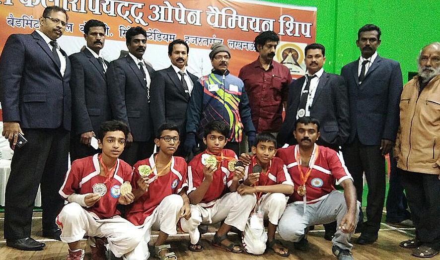 കല്‍പ്പറ്റ: ഉത്തര്‍പ്രദേശിലെ ലക്‌നോവില്‍ കെ. ഡി. സിംഗ് സ്റ്റേഡിയത്തില്‍ വെച്ച് നടന്ന ഓപ്പണ്‍ നാഷണല്‍ കളരിപ്പയറ്റ് ചാമ്പ്യന്‍ഷിപ്പില്‍ 10 മെഡലുകള്‍ നേടിയ കല്‍പ്പറ്റയിലെ വയനാടന്‍ കായികാഭ്യാസകളരി സംഘത്തിലെ കുട്ടികളെ ലക്‌നോവില്‍ ആദരിച്ചു. റിയല്‍ ഫൈറ്റ്, വാളും പരിചയും, സ്റ്റിക് ഫൈറ്റ് വാള്‍ വലി, മെയ്പ്പയറ്റ്, ഉറുമിപ്പയറ്റ്, എന്നീ വിഭാഗത്തില്‍ എസ്.കെ.എം.ജെ സ്‌കൂളിലെ മുഹമ്മദ് റിഷാന്‍ 3 സ്വര്‍ണ്ണവും 2 – വെള്ളിയും ഒരു വെങ്കലവും നേടി.മുണ്ടേരി ഹൈസ്‌കൂളിലെ മുഹമ്മദ് നിഹാല്‍ സ്റ്റിക് ഫൈറ്റ്, വാളും പരിച എന്നിവയില്‍ ഒരു സ്വര്‍ണ്ണവും ഒരു വെള്ളിയും നേടി.ഡി പോള്‍ സ്‌കൂളിലെ കീത്ത് ജോസഫ് ചുവട്ടടിയില്‍ സ്വര്‍ണ്ണവും എസ്.കെ.എം.ജെ സ്‌കൂളിലെ നാദിഷ് റഹ് മാന്‍ മെയ്പ്പയറ്റില്‍ വെങ്കലവും നേടി. സ്വീകരണ യോഗത്തില്‍ ഗ്രാന്റ്മാസ്റ്റര്‍ കെ.ആര്‍. വേലായുധന്‍ ഗുരുക്കള്‍, മുഖ്യ പരിശീലകന്‍ ഹാജി എ.കെ.ഇബ്രാഹിം ഗുരുക്കള്‍, സെക്രട്ടറി റസീഫ് അലി ഗുരുക്കള്‍, ബഷീര്‍ മുണ്ടേരി, സലീം കല്‍പ്പറ്റ, പി.സജീവന്‍ എന്നിവര്‍ സംസാരിച്ചു.