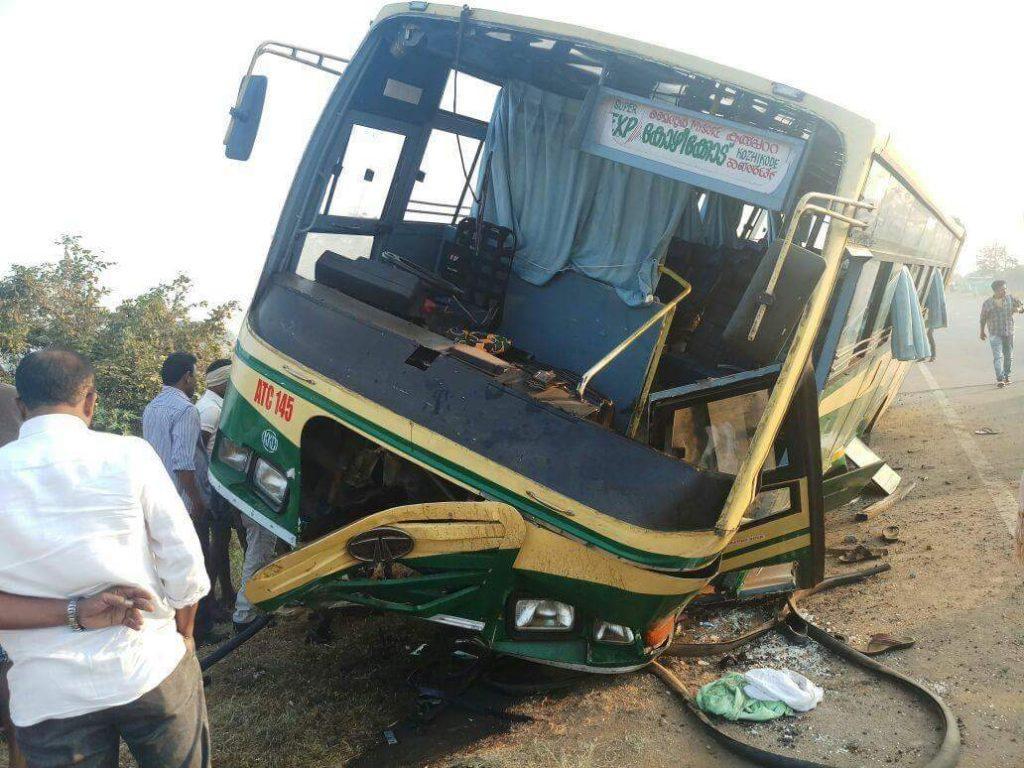 ബംഗളൂരുവില് നിന്നും കോഴിക്കോട്ടേക്ക് വരികയായിരുന്ന കോഴിക്കോട് കെ.എസ്.ആര്.ടി.സി ഡിപ്പോയിലെ എ ടി സി 145 നമ്പര് സൂപ്പര് എക്സ്പ്രസ് ബസാണ് അപകടത്തില്പ്പെട്ടത്.ഗുണ്ടല്പേട്ട കക്കല് തൊണ്ടിക്ക് സമീപം വെച്ച് ഇന്ന് പുലര്ച്ചെ 3.30 യോടെയാണ് അപകടം. അപകടത്തില് കോഴിക്കോട് നാദാപുരം സ്വദേശിയായ കണ്ടക്ടര് പി.പി സിജു (35) വാണ് മരിച്ചത്.. യാത്രക്കാരിൽ ചിലർക്ക് പരിക്കേറ്റിട്ടുണ്ട്. .അപകടത്തിന്റെ ആഘാതത്തില് ബസിന്റെ പിന്ചക്രങ്ങള് ഊരിതെറിച്ച് പോയ നിലയിലാണുള്ളത്. ഡ്രൈവർ ഉറങ്ങിയതാണ് അപകടകാരണമെന്ന് പ്രദേശവാസികൾ പറഞ്ഞു.