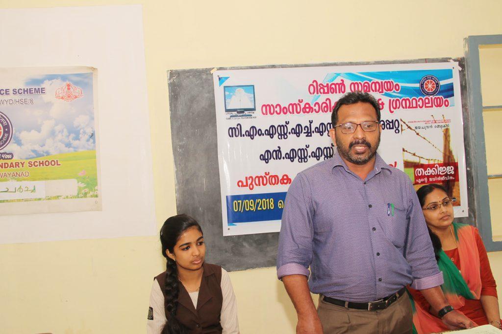 റിപ്പൺ സമന്വയം സാംസ്കാരിക വേദി ആൻഡ് ഗ്രന്ഥാലയം അരപ്പറ്റ സി എം എസ്സ് എച് എസ്സ് എസ്സ് എൻ എസ്സ് എസ്സ് യൂണിറ്റുമായി ചേർന്ന് ജയചന്ദ്രൻ മൊകേരിയുടെ "തക്കിജ്ജ എന്റെ ജയിലനുഭവങ്ങൾ" എന്ന പുസ്തകത്തെ ആസ്പദമാക്കി പുസ്തക ചർച്ച നടത്തി എൻ എസ്സ് എസ്സ് ലീഡർ അപർണ അധ്യക്ഷത വഹിച്ച യോഗം പ്രിൻസിപ്പൽ തോമസ് വർഗീസ് ഉദ്ഘാടനം ചെയ്തു അഷറഫ് അലി കെ പുസ്തകാവതരണം നടത്തി കുമാരി നിഷാന, കുമാരി ഷബാന, ബിന്ദു എം കെ, ശാലിൻ പി എന്നിവർ ചർച്ചയിൽ പങ്കെടുത്തു എൻ എസ്സ് എസ്സ് ലീഡർ എബിൻ ചടങ്ങിന് നന്ദി അർപ്പിച്ചു