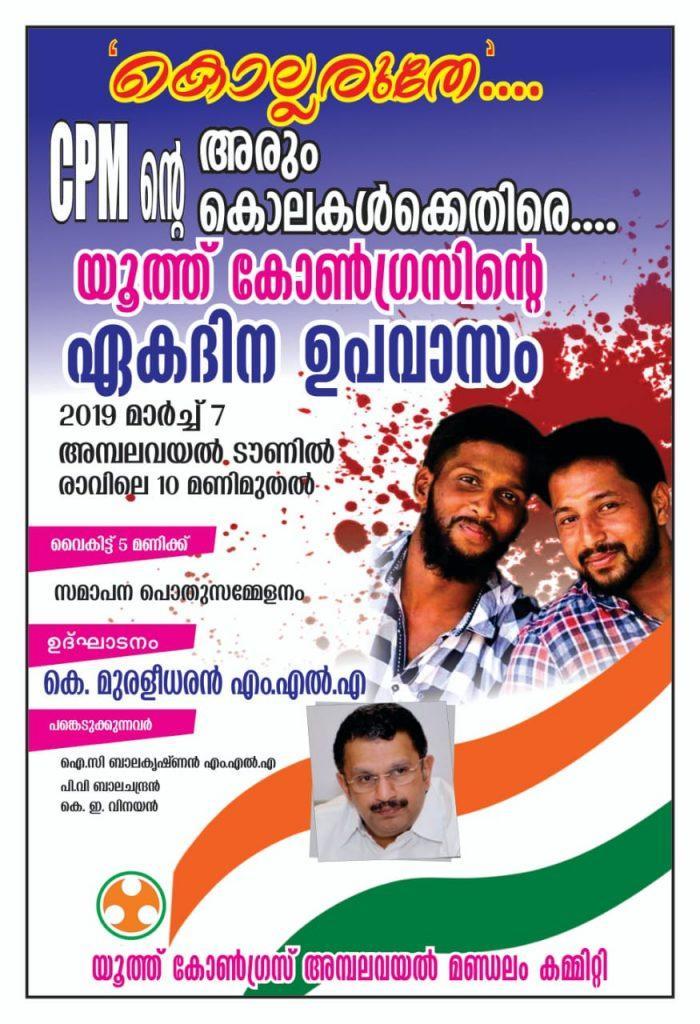 News Wayanad അമ്പലവയലിൽ വ്യാഴാഴ്ച യൂത്ത് കോൺഗ്രസ് ഉപവാസം . March 6, 2019 0 By ന്യൂസ് വയനാട് ബ്യൂറോ കാസർഗോട്ടെ ഇരട്ട കൊലപാതകത്തിൽ പ്രതിഷേധിച്ച് യൂത്ത് കോൺഗ്രസ് വ്യാഴാഴ്ച അമ്പലവയലിൽ ഉപവാസ സമരം നടത്തും. രാവിലെ 10 മുതൽ നടത്തുന്ന ഉപവാസത്തിൽ കെ. മുരളീധരൻ പങ്കെടുക്കും. കൃപേഷിന്റെയും ശരത് ലാലിന്റെയും കൊലപാതകത്തിൽ സി.ബി..ഐ. അന്വേഷണം ആവശ്യപ്പെട്ടാണ് സമരം Post navigation Previous: പെണ്മക്കാനിയിൽ അഞ്ച് രൂപക്ക് ചായയും കടിയും: എട്ടാം തിയതി വരെ കാത്തിരിക്കണം.Next: തോട്ടം തൊഴിലാളി പ്രവർത്തക കൺവൻഷൻ 13ന് Also read News Wayanad ടൗൺഷിപ്പിൽ നിർമ്മിച്ച വീടുകളുടെ അപാകതകൾ പരിഹരിക്കാൻ ആവശ്യമായ നടപടികൾ സ്വീകരിക്കും: കെ രാജൻ April 18, 2026 0 News Wayanad സ്വർണവിലയിൽ വർധനവ് : ഇന്ന് വാങ്ങേണ്ടത് മാസത്തിലെ ഏറ്റവും ഉയർന്ന നിരക്കില് April 18, 2026 0 News Wayanad ‘പ്രശ്നങ്ങള് വന്നാല് ഊരാളുങ്കല് സമാധാനം പറയണം’; വീടിന് വിള്ളൽ എന്ന ആരോപണത്തിന് പിന്നാലെ വയനാട് ടൗൺഷിപ്പ് സന്ദർശിച്ച് മന്ത്രി കെ.രാജൻ April 18, 2026 0 Leave a ReplyDefault Comments (0)Facebook Comments Leave a Reply Cancel replyYour email address will not be published. Required fields are marked *Comment * Name * Email * Website