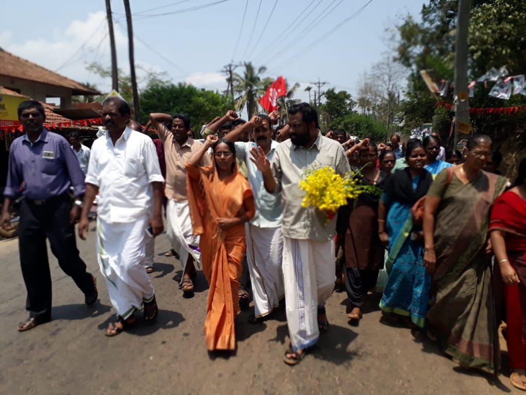 വാദ്യമേളങ്ങളുടെ അകമ്പടിയോടെയായിരുന്നു പര്യടനം. ബൈക്ക് റാലിയും പ്രചാരണത്തിന് കൊഴുപ്പേകി. പടക്കം പൊട്ടിച്ചായിരുന്നു പലയിടങ്ങളിലെയും വരേവേൽപ്പ്. സ്വീകരണ പൊതുയോഗങ്ങളിൽ എൽഡിഎഫ് ബൂത്ത് കമ്മിറ്റികൾക്കും എൽഡിഎഫ് ഘടകകക്ഷികളുടെ വർഗ ബഹുജന സംഘടനകൾക്കും വേണ്ടി ഹാരാർപ്പണമുണ്ടായി. സ്ത്രീകളും കുട്ടികളും ആദിവാസി വയോജനങ്ങളും കൊന്നപ്പൂക്കളും ബൊക്കകളും നൽകി സ്ഥാനാർഥിയെ വരവേറ്റു. ചൂട് ശമിപ്പിച്ച് ഇടക്ക് പെയ്ത മഴയും പ്രാചാരണച്ചൂട് കുറച്ചില്ല.