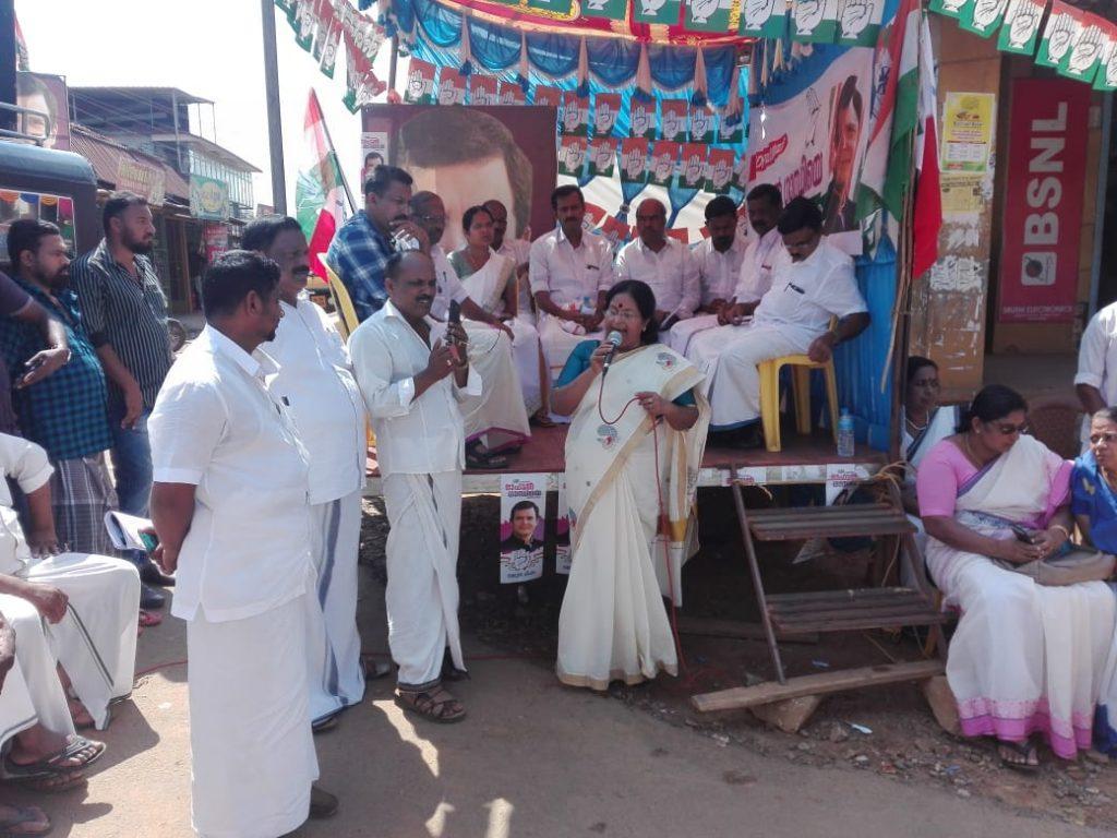 കോൺഗ്രസ് അധ്യക്ഷൻ രാഹുൽഗാന്ധിയുടെ വയനാട് ലോക്സഭാ മണ്ഡലത്തിലെ തിരഞ്ഞെടുപ്പ് പ്രചാരണത്തിന്റെ ഭാഗമായി മാനന്തവാടി നിയോജകമണ്ഡലത്തിൽ നടത്തിയ വാഹന പ്രചരണ ജാഥയിലും കോർണർ മീറ്റിങ്ങിലും മുഖ്യ പ്രഭാഷണം നടത്തുകയായിരുന്നു അവർ. . വാഹന പ്രചരണ ജാഥയുടെയും കോർണർ മീറ്റിംഗുകളുടെയും ഉദ്ഘാടനം എ.ഐ.സി.സി തിരഞ്ഞെടുപ്പ് നിരീക്ഷകൻ മുൻകേന്ദ്രമന്ത്രി കെ വി തങ്കബാലു നിർവഹിച്ചു. മുൻമന്ത്രി അനൂപ് ജേക്കബ് വാഹന പ്രചരണ ജാഥയ്ക്ക് നേതൃത്വം നൽകി. കെപിസിസി ഉപാധ്യക്ഷ ലാലി വിൻസെൻറ് കോർണർ മീറ്റിംഗുകളിൽ മുഖ്യപ്രഭാഷണം നടത്തി. ജാഥയിലുടനീളം ജനങ്ങൾ മികച്ച സ്വീകരണമാണ് ജാഥാ ക്യാപ്റ്റനും അംഗങ്ങൾക്കും നൽകിയത്. കൊടിതോരണങ്ങളാലും പോസ്റ്ററുകളാലും യോഗവേദികൾ അലങ്കരിച്ചിരുന്നു.