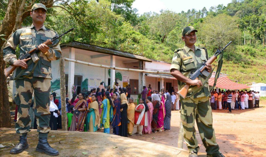ലോക്‌സഭ തെരഞ്ഞെടുപ്പിനു സുരക്ഷയൊരുക്കാന്‍ ജില്ലയില്‍ രണ്ടായിരത്തോളം സേനാഗംങ്ങള്‍ സജ്ജരായി. തിങ്കളാഴ്ച രാവിലെ തന്നെ പ്രശ്‌നബാധിത പ്രദേശങ്ങളിലെ പോളിങ് സ്‌റ്റേഷനുകളുടെ നിയന്ത്രണം സേനകളേറ്റെടുത്തു. കേരള പൊലീസിനെ കൂടാതെ തമിഴ്‌നാട് പൊലീസും ജില്ലയിലെത്തിയിട്ടുണ്ട്. അതിര്‍ത്തി സംരക്ഷണ സേന, ഇന്‍ഡോടിബറ്റന്‍ അതിര്‍ത്തി സേന എന്നിവരടക്കം അഞ്ച് കമ്പനി കേന്ദ്രസേനയും സുരക്ഷ ഒരുക്കാനായി ഉണ്ടായിരുന്നു  പ്രശ്‌നബാധിത പ്രദേശങ്ങളിലടക്കം വിവിധ വിഭാഗങ്ങളിലെ സായുധ സേനാഗംങ്ങളുടെ നേതൃത്വത്തില്‍ പട്രോളിങും ശക്തമാക്കിയിട്ടുണ്ട്. ജില്ലയുടെ അതിര്‍ത്തികളെല്ലാം മുഴുവന്‍ സമയ നിരീക്ഷണവും ശക്തമാക്കിയിരുന്നെങ്കിലും തലപ്പുഴ മക്കി മലയിൽ മാവോയിസ്റ്റ് പോസ്റ്റർ പ്രത്യക്ഷപ്പെട്ടു. . വോട്ടെടുപ്പ് പൂര്‍ത്തിയാക്കി വോട്ടിങ് സാമഗ്രികള്‍ തിരിച്ച് കളക്ഷന്‍ സെന്ററിലെത്തിക്കുന്നതു വരെ പഴുതടച്ച സുരക്ഷയാണ് പൊലീസിന്റെ നേതൃത്വത്തില്‍ ഒരുക്കിയിരുന്നത്. .
