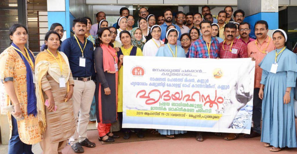 ഉരുള്പൊട്ടലും പ്രളയവും ദുരിതം വിതച്ച വയനാടിനു മനക്കരുത്ത് പകരാന് കണ്ണൂരില് നിന്നുമുള്ള മാനസികരോഗ വിദഗ്ധരുടെ സംഘം ജില്ലയിലെത്തി. കണ്ണൂര് നാഷണല് ഹെല്ത്ത് മിഷന്റെയും കണ്ണൂര് സര്വ്വകലാശാല അംഗീകൃത സ്ഥാപനമായ ഹൃദയാരാം കമ്മ്യുണിറ്റി കോളേജ് ഓഫ് കൗണ്സലിങിന്റെയും നേതൃത്വത്തിലാണ് കൗണ്സലിങ്, സൈക്കോ തെറാപ്പി വിദഗ്ധരുടെ മുപ്പതംഗസംഘം ജില്ലയില് എത്തിയത്. 'ഹൃദയഹസ്തം' മാനസിക ശാക്തീകരണം എന്ന പദ്ധതിയിലൂടെ ഉരുള്പൊട്ടലിനും പ്രളയത്തിനും ശേഷമുണ്ടാകുന്ന വിവിധ മാനസിക പ്രശ്നങ്ങള്ക്ക് വിവിധ തെറാപ്പികളിലൂടെ ശാസ്ത്രീയമായ പരിഹാരമുണ്ടാക്കുകയാണ് ലക്ഷ്യം. മേപ്പാടി പുത്തുമലയില് ദുരിതബാധിതരായവരുടെ മാനസികനില വീണ്ടെടുക്കാന് വീടുകള്തോറും കയറി ഇറങ്ങിയുള്ള പ്രവര്ത്തനങ്ങളാണ് നടത്തുക. ജില്ലയുടെ വിവിധ ഭാഗങ്ങളില് പ്രവര്ത്തിക്കുന്ന ദുരിതാശ്വാസ ക്യാമ്പുകളിലെത്തി പൊതുവായി കാണപ്പെടുന്ന മാനസിക പ്രശ്നങ്ങളും പരിശോധിക്കും.