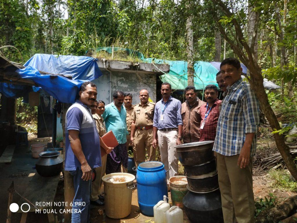 150 ലിറ്റർ വാഷും 10 ലിറ്റർ ചാരായവും കണ്ടെടുത്തു.