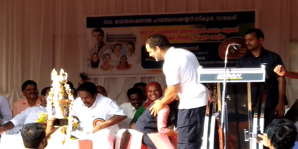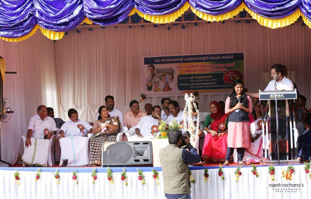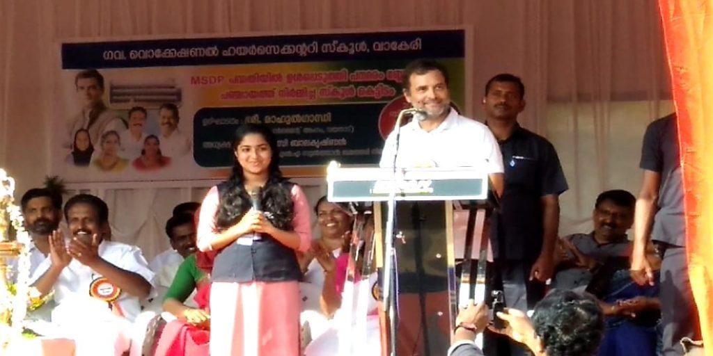 പരിഭാഷക്കിെടെ പതറിപ്പോയ പൂജയെന്ന വിദ്യാർത്ഥിനിയോട് " തുടക്കത്തിൽ ഞാനും ഇങ്ങനെയായിരുന്നുവെന്ന് " രാഹുൽ ഗാന്ധി.ധൈര്യവും പ്രോത്സാഹനവും നൽകി അവസാനം വരെ വേദിയിൽ നിർത്തി ,  ചോക് ലേറ്റ് നൽകി അഭിനന്ദിച്ചു. കാലിൽ വീണ പൂജയോട് ഭയപ്പെടേണ്ട, ധൈര്യമായി പൊയ്ക്കോളൂ എന്നുപദേശിച്ച് , ആശ്ലേഷിച്ച്  പറഞയക്കുകയായിരുന്നു  രാഹുൽ ഗാന്ധി . വേദിയിൽ പകച്ച തനിക്ക് ധൈര്യം പകർന്ന രാഹുലിന്റെ  പ്രോത്സാഹനം മറക്കാൻ കഴിയില്ലന്നും  ജീവിതത്തിലെ ഏറ്റവും  വലിയ നിമിഷമായിരുന്നുവെന്ന് പൂജ പിന്നീട് ഒരു ദേശീയ മാധ്യമത്തോട് പറഞ്ഞു. വാകേരി ഗവ. ഹയർ സെക്കണ്ടറി സ്കൂളിലെ പ്ലസ് വൺ സയൻസ് വിദ്യാർത്ഥിയാണ് പി.വി. പൂജ. എം.എസ് .ഡി.പി പദ്ധതിയിൽ  ഉൾപ്പെടുത്തി നിർമ്മിച്ച കെട്ടിടം ഉദ്ഘാടനം ചെയ്യാനാണ് എം.പി. എത്തിയത്. വേദിയിൽ സൗണ്ട് ബോക്സ് ഇല്ലാത്തതിനാൽ  രാഹുലിന്റെ പ്രസംഗം വ്യക്തമായി വിദ്യാർത്ഥിനിക്ക് കേൾക്കാൻ കഴിഞ്ഞില്ല. അതിനാൽ പല തവണ തപ്പി തടയേണ്ടി വന്നു. വേദിയിലിരുന്ന ചില നേതാക്കൾ മലയാളത്തിൽ പറഞ്ഞ് കൊടുക്കാൻ ശ്രമിച്ചപ്പോൾ ഇടപ്പെട്ട രാഹുൽ  കുട്ടിയെ ശല്യപ്പെടുത്തരുതെന്ന് അഭ്യർത്ഥിച്ചു.