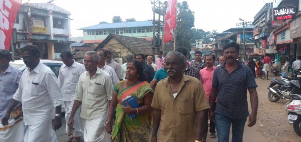 മാനന്തവാടി: കർണsകയിലെ മംഗലാപുരത്ത് പ്രകടനം നടത്തിയ സി.പി.ഐ കേന്ദ്ര സെക്രട്ടേറിയറ്റ് അംഗം ബിനോയ് വിശ്വം, കർണ്ണാടക സംസ്ഥാന സെക്രട്ടറി സാഥി സുന്ദരേശ് തുടങ്ങിയ നേതാക്കളെയും കഴിഞ്ഞ ദിവസം വാർത്തയെടുക്കാൻ എത്തിയ മാധ്യമ പ്രവർത്തകരെയും കസ്റ്റഡിയിൽ എടുത്ത പോലീസ് നടപടിയിൽ പ്രതിഷേധിച്ച് സി.പി.ഐ മാനന്തവാടി മണ്ഡലം കമ്മറ്റിയുടെ നേതൃത്വത്തിൽ മാനന്തവാടി ടൗണിൽപ്രകടനം നടത്തി. പൗരത്വ നിയമത്തിനെതിുരെ നടക്കുന്ന പ്രതിഷേധങ്ങളെ നിരോധനാജ്ഞ പ്രഖ്യാപിച്ചും മാധ്യമങ്ങൾക്ക് കുച്ച് വിലങ്ങിട്ടും മർദന മുറകൾ ഉപയോഗിച്ചും നേതാക്കളെ അറസ്റ്റ് ചെയ്തും അടിച്ചമർത്താനാണ് കേന്ദ്ര സർക്കർക്കാരും ബിജെപിയും ശ്രമിക്കുന്നത്.