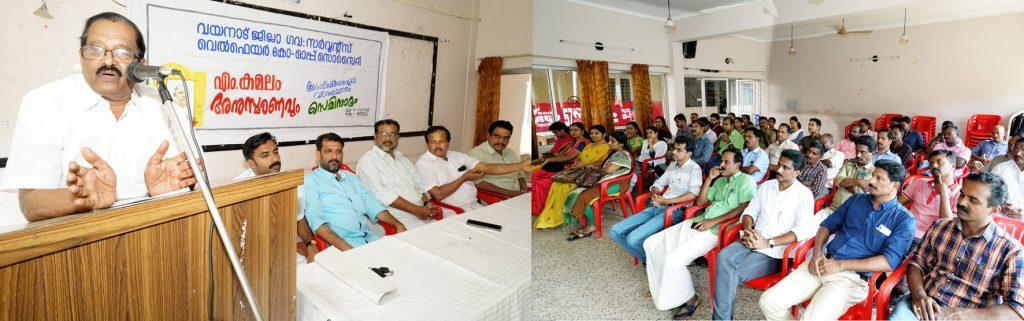 കൽപ്പറ്റ: ജനപ്രതിനിധിയെന്ന നിലയിലും മികച്ച സഹകരണ മന്ത്രിയെന്ന നിലയിലും എം കമലത്തെ വയനാട്ടുകാർക്ക് ഒരു കാലത്തും മറക്കാനാവില്ലെന്ന് കെ പി സി സി മെമ്പറും മുൻ ജില്ലാ സഹകരണ ബാങ്ക് പ്രസിഡന്റുമായ പി വി ബാലചന്ദ്രൻ പറഞ്ഞു. വയനാട് ജില്ലാ ഗവൺമെന്റ് സർവ്വന്റ്സ് വെൽഫെയർ സഹകരണ സംഘത്തിന്റെ ആഭിമുഖ്യത്തിൽ നടന്ന അനുസ്മരണ സമ്മേളനം ഉദ്ഘാടനം ചെയ്തു പ്രസംഗിക്കുകയായിരുന്നു അദ്ദേഹം. സംഘം പ്രസിഡന്റ് ജി എസ് ഉമാശങ്കർ അദ്ധ്യക്ഷത വഹിച്ചു. അനുസ്മരണത്തോടനുബന്ധിച്ച് നടന്ന സെമിനാറിൽ അസഹിഷ്ണുതയുടെ വർത്തമാനം എന്ന വിഷയം അഡ്വ. എം വേണുഗോപാൽ അവതരിപ്പിച്ചു. ഗോകുൽദാസ് കോട്ടയിൽ, മോബിഷ് പി തോമസ്, കെ ടി ഷാജി, പ്രിയേഷ് അഞ്ചുകുന്ന്, ടി ജെ സഖറിയ, ആർ രാജൻ, നളിനി ശിവൻ, കെ ഇ ഷീജ മോൾ, സജി ജോൺ, വി സി സത്യൻ, ജി പ്രവീൺ കുമാർ, വി മനോജ്, കെ നസീമ, ലൈജു ചാക്കോ എന്നിവർ പ്രസംഗിച്ചു