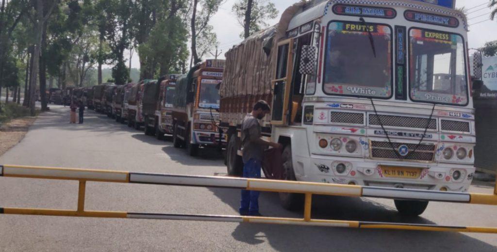 മുത്തങ്ങ ചെക്ക് പോസ്റ്റിൽ കർണാടകയിൽ നിന്നു കേരളത്തിലേക്ക് ചരക്കുമായി വന്ന വാഹനങ്ങളും , കേരളത്തിൽ നിന്ന് കര്ണാടകയിലേക്കു പോകുന്ന വാഹനങ്ങളടക്കം അൻപതോളം വാഹനങ്ങൾ മുത്തങ്ങ ചെക്പോസ്റ്റിൽ കിടക്കുന്നു.വാഹനങ്ങളെ കടത്തി വിടുന്ന കാര്യത്തിൽ ഇതുവരെ തീരുമാനമായിട്ടില്ല