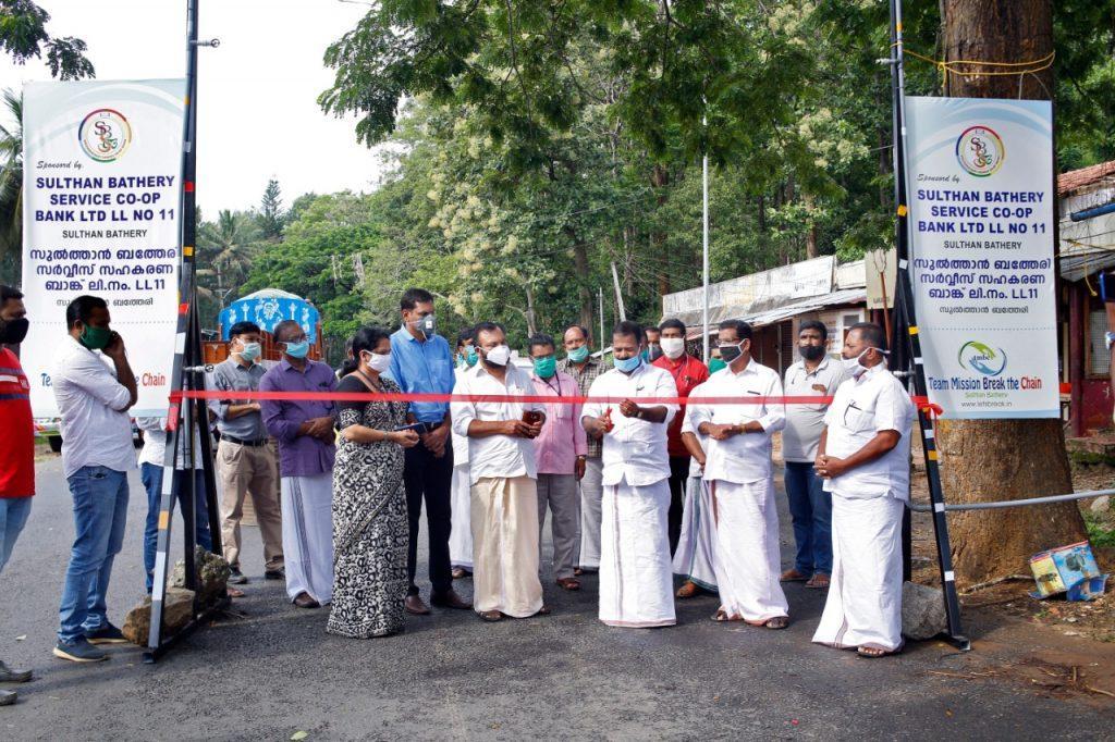 വയനാട് മുത്തങ്ങയിൽ അതിർത്തി കടന്നെത്തുന്ന വാഹനങ്ങൾ അണുവിമുക്തമാക്കി സുരക്ഷ ഉറപ്പാക്കുന്നതിനു വേണ്ടി സുൽത്താൻ ബത്തേരി സർവ്വീസ് കോ ഓപ്പറേറ്റീവ് ബാങ്കിന്റെ സഹകരണതോടെ ടീം മിഷൻ ബ്രേക്ക് ദി ചെയിൻ എന്ന സംഘടനയും ചേർന്നാണ് പദ്ധതി നടപിലാക്കിയത്.
