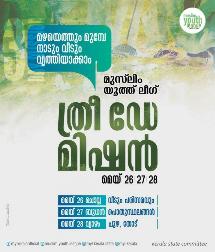 മഴയെത്തും മുമ്പെ നാടും വീടും വൃത്തിയാക്കാം; മുസ്ലിം യൂത്ത് ലീഗ് ത്രീ ഡേ മിഷന് തുടക്കം