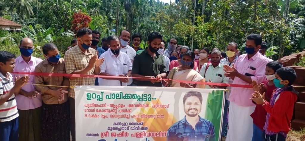 പുതിയ പാടി – ആപ്പാളം – അറംമ്പിലേരി – കടൽ മാട് റോഡ് 2019-20 ബ്ലോക്ക് പഞ്ചായത്ത് തനത് ഫണ്ടിൽ ഉൾപ്പെടുത്തി 9 ലക്ഷം രൂപയിൽ പണി പൂർത്തീകരിച്ച മൂപ്പൈനാട് ബ്ലോക്ക് ഡിവിഷനിലെ കോൺക്രീറ്റ് പാതയുടെ ഉൽഘാടനം മൂപ്പൈനാട് ഗ്രാമ പഞ്ചായത്ത് പ്രസിഡന്റ് ആർ യമുന ഉൽഘാടനം നിർവ്വഹിച്ചു , ജഷീർ പള്ളിവയൽ , കാപ്പൻ ഹംസ , കണ്ടത്തിൽ ജോസ് , ജോയ് ആപ്പാളം , ഷമീർ ആപ്പാളം , സോണി ആപ്പാളം തുടങ്ങിയവർ സംസാരിച്ചു.