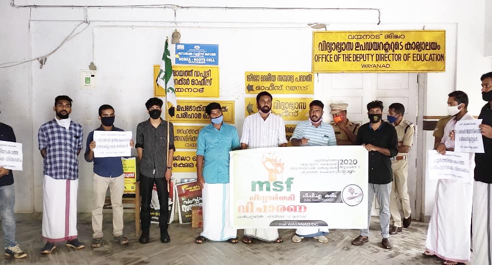ഓണ്ലൈന് ക്ലാസ്സുകള്,കാണാതായ പ്ലസ്ടൂ ഉത്തരകടലാസ് വിഷയങ്ങൾ അടക്കം ഉയർത്തി എംഎസ്എഫ് വയനാട് ഡിഡിഇ ഓഫീസ് ഉപരോധിച്ച് വിദ്യാര്ഥി വിചാരണ നടത്തി.