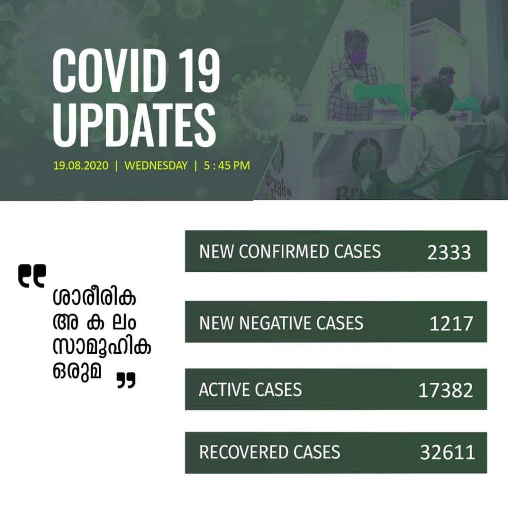 സംസ്ഥാനത്ത് ഇന്ന് 2333 പേര്ക്ക് കോവിഡ്-19 സ്ഥിരീകരിച്ചു :572 ഹോട്ട് സ്പോട്ടുകൾ.