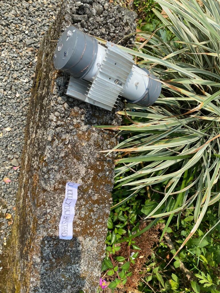 വീടിന് മുമ്പിൽ ബോംബിന് സമാനമായ വസ്തു കണ്ടെത്തി. പോലീസെത്തി പരിശോധന തുടങ്ങി.