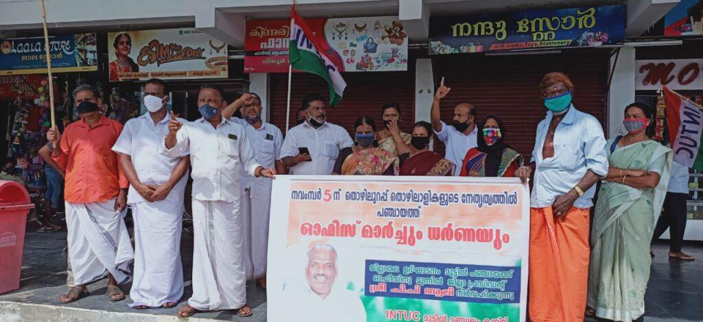 ഐഎൻടിയുസി തൊഴിലുറപ്പ് തൊഴിലാളികളുടെ നേതൃത്വത്തിൽ മുട്ടിലിൽ പഞ്ചായത്ത് ഓഫീസ് മാർച്ചും ധർണയും നടത്തി.