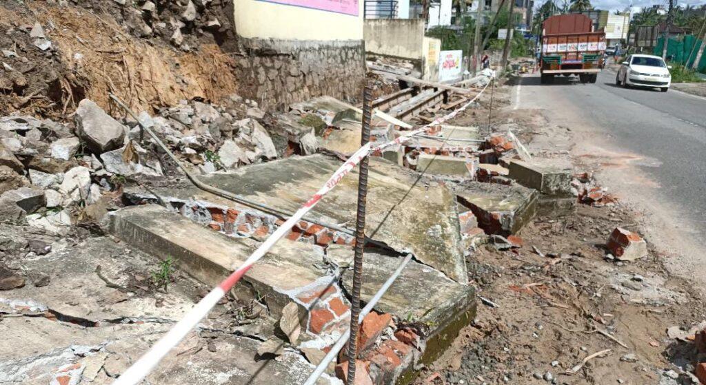സംരക്ഷണഭിത്തിയോട് താഴെയുള്ള വഴിയിൽ സഞ്ചരിക്കുന്ന കാൽനടയാത്രക്കാർക്കും അപകട ഭീഷണിയുണ്ട്.