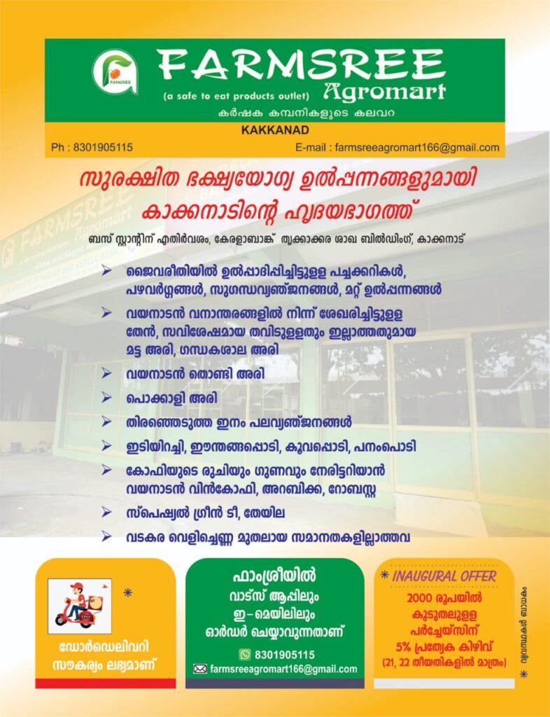 ഫാംശ്രീ അഗ്രോമാർട്ട് തിങ്കളാഴ്ച തുറക്കും: കർഷകരിൽ നിന്നുള്ള ഉല്പന്നങ്ങൾ ഇടനിലക്കാരില്ലാതെ നേരിട്ട് വാങ്ങാം