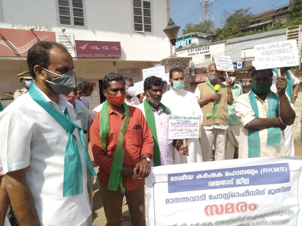 ദേശീയ കർഷക മഹാ സഖ്യം ആർ.കെ. എം. എസ്.  വയനാട് ജില്ലാ കമ്മറ്റി  ഫാർമേഴ്സ് റിലീഫ് ഫോറം , എ.ഐ.. എഫ്.എ. കെ.പി.എസ്..ഇൻഫാം ,  എന്നീ കർഷക സംഘടനകളുടെ സഹകരണത്തോടെ ഡൽഹി കർഷകസമരത്തിന് ഐക്യദാർഡ്യം പ്രഖ്യാപിച്ച് മാനന്തവാടി പോസ്റ്റോഫീസിനു മുമ്പിൽ സമരം നടത്തി.