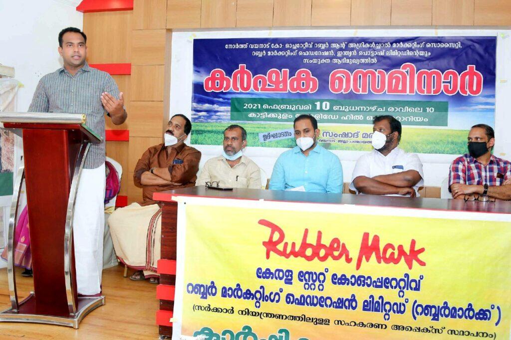 മാനന്തവാടി – മാറുന്ന കാലത്തിന് അനുസരിച്ച് നൂതന കൃഷീ രിതിയിലുടെ കാർഷിക മേഖലയെ ശക്തിപ്പെടുത്താൻ പദ്ധതികൾ ആവിഷ്ക്കരിച്ച് നോർത്ത് വയനാട് കോ-ഓപ്പ റേറ്റിവ് റബ്ബർ ആൻ്റ് അഗ്രികൾച്ചറൽ മാർക്കറ്റിംഗ് സൊസൈറ്റി, കേരള സംസ്ഥാന റബ്ബർമാർക്ക്, ഐ.പി.എൻ എന്നിവയുടെ ആഭിമുഖ്യത്തിൽ കാർഷിക സെമിനാർ സംഘടിപ്പിച്ചു.കാട്ടിക്കുളം ഹോളിഡേ ഹാളിൽ നടന്ന പരിപാടി വയനാട് ജില്ലാ പഞ്ചായത്ത് പ്രസിഡണ്ട് സംഷാദ് മരയ്ക്കാർ ഉദ്ഘാടനം ചെയ്യുതു. സംഘം പ്രസിഡണ്ട് ടി.എ.റെജി അദ്ധ്യക്ഷത വഹിച്ചു. മാർക്കറ്റ് ഫെഡ് എം.ഡി.ഷിറോസ്.എസ്.എ.മുഖ്യ പ്രഭാഷണം നടത്തി.ശ്രീകാന്ത് പട്ടയൻ. കടവത്ത് മുഹമ്മദ്, കെ.എം.അബ്ദുള്ള സിതാ ബാലൻ, പി.എസ്.ശ്യാമള, വി.വി.രാമകൃഷ്ണൻ, പി.ആർ. ഷിബു, എ.ഗിരിജ എന്നിവർ പ്രസംഗിച്ചു. സെമിനാറിൽ ഈശ്വരപ്രസാദ്, വി. ലക്ഷ്മണൻ, പി.പി.ജോർജ് എന്നിവർ ക്ലാസുകൾ എടുത്തു.