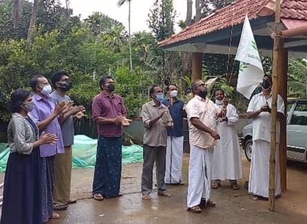 പോൾ തലച്ചിറയുടെ ഭവനത്തിൽ കൊടി ഉയർത്തി. കോവിഡ് സാഹചര്യത്തിൽ ഒാൺലൈനായി