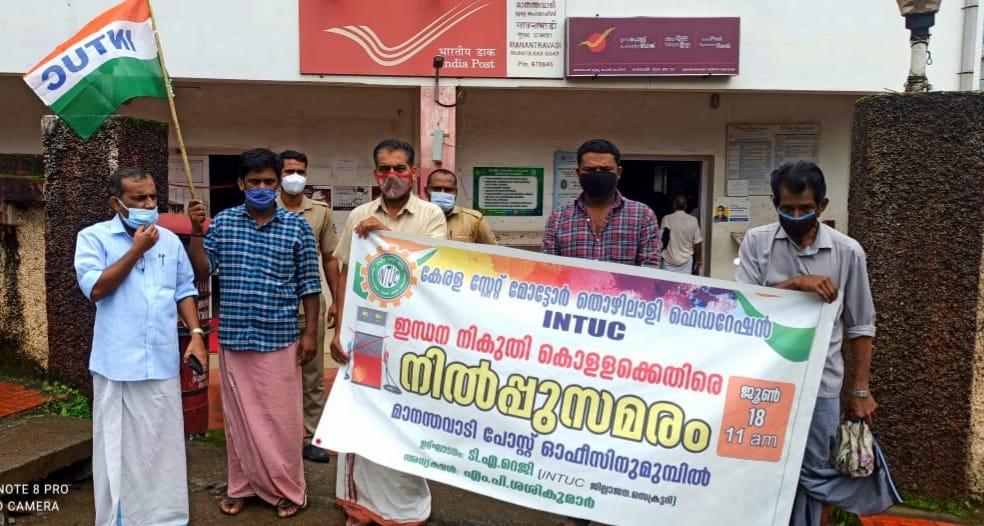 മാനന്തവാടി: ദുരിത കാലത്തും ഇന്ധന വിലവർദ്ധനവിലൂടെ ജനങ്ങളെ കൊള്ളയടിക്കുന്ന കേന്ദ്ര – കേരള സർക്കാരുകൾക്കെതിരെ ഐ. എൻ.ടി. യു. സി. മോട്ടോർ ഫെഡറേഷൻ നടത്തിയ നിൽപ്പു സമരത്തിന്റെ താലുക്ക് തല ഉദ്ഘാടനം മാനന്തവാടി പോസ്റ്റ് ഓഫിസിന് മുമ്പിൽ ടി.എ. റെജി ഉദ്ഘാടനം ചെയ്യ്തു. എം.പി.ശശികുമാർ അദ്ധ്യക്ഷത വഹിച്ചു. കല്ലോടി പോസ്റ്റ് ഓഫീസിന് മുമ്പിൽ കുന്നത്ത് മത്തച്ചൻ ഉദ്ഘാടനം ചെയ്തു. ജോഷി വാണാക്കുടി അദ്ധ്യക്ഷത വഹിച്ചു. പനമരത്ത് ഷിജു സെബാസ്റ്റ്യൻ ഉദ്ഘാടനം ചെയ്തു. കെ.ടി. നിസ്സാം അദ്ധ്യക്ഷത വഹിച്ചു. തലപ്പുഴയിൽ അസ്സിസ് വാളാട് ഉദ്ഘാടനം ചെയ്തു. പി.എസ്.രാജേഷ് അദ്ധ്യക്ഷത വഹിച്ചു. തിരുനെല്ലി കാട്ടിക്കുളത്ത് സതീശൻ പുളിമുട് ഉദ്ഘാടനം ചെയ്തു. ഷിനോജ് അണമല അദ്ധ്യക്ഷത വഹിച്ചു. വെള്ളമുണ്ടയിൽ ചിന്നമ്മ ജോസ് ഉദ്ഘാടനം ചെയ്തു. ടി.കെ. മമ്മുട്ടി അദ്ധ്യക്ഷത വഹിച്ചു. വിവിധ സമര കേന്ദ്രങ്ങളിൽ റഷീദ് തൃശ്ശിലേരി, നിധിൻ.പി.എം, ലൈജി തോമസ്, ഷാജി ജേക്കബ്, സച്ചിൻ പനമരം തുടങ്ങിയവർ പങ്കെടുത്ത് പ്രസംഗിച്ചു.
