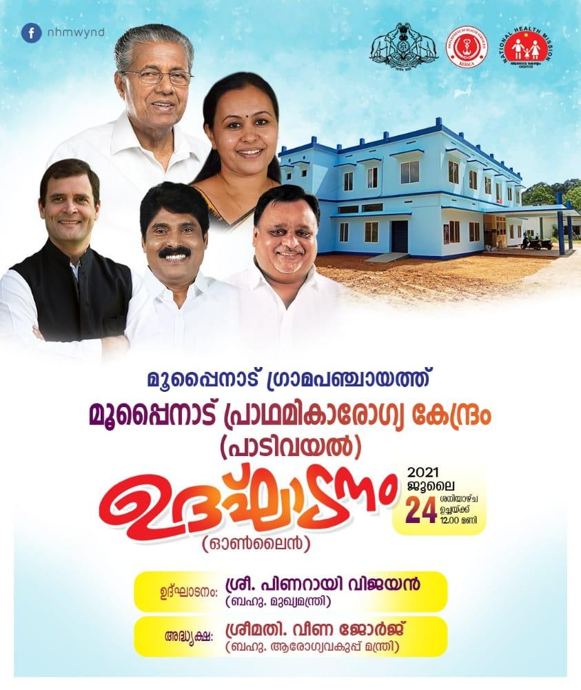 നാഷണല് ഹെല്ത്ത് മിഷന്റെ ഒന്നര കോടി രൂപ ഇതിനായി ചെലവിട്ടു.കേരള സ്റ്റേറ്റ് കോസ്റ്റല് ഏരിയ ഡെവലപ്മെന്റ് കോര്പ്പറേഷനാണ് നിര്മ്മാണ ഏജന്സി. സംസ്ഥാന സര്ക്കാരിന്റെ ആര്ദ്രം ദൗത്യം മൂന്നാം ഘട്ടത്തില് കുടുംബാരോഗ്യ കേന്ദ്രമായി ഉയര്ത്തുന്ന ആതുരാലയമാണ് മൂപ്പൈനാട്. കുടുംബാരോഗ്യ കേന്ദ്രത്തിന് ആവശ്യമായ എല്ലാവിധ സൗകര്യങ്ങളോടും കൂടിയാണ് പുതിയ കെട്ടിട നിര്മ്മാണം. പഞ്ചായത്തിന്റെ ഉടമസ്ഥതയിലുള്ള സ്ഥലത്ത് രണ്ടു നിലകളിലായി 16,140 സ്ക്വയര് ഫീറ്റ് വിസ്തൃതിയിലാണ് കെട്ടിടം. താഴെ നിലയില് 8,285 സ്ക്വയര്ഫീറ്റ് വിസ്തീര്ണ്ണത്തിലായി ഒ.പി ടിക്കറ്റ് കൗണ്ടര്, പ്രീ ചെക്കപ്പ് മുറി, 3 ഒ.പി റൂമുകള്, കാത്തിരിപ്പ് സ്ഥലം, മുലയൂട്ടല് കേന്ദ്രം, കുത്തിവെപ്പ് ഏരിയ, അന്വേഷണം- രജിസ്ട്രേഷന്- റെക്കോര്ഡ് റൂം, ഡ്രസ്സിങ് റൂം/ മൈനര് ഓപ്പറേഷന് തിയേറ്റര്, ലബോറട്ടറി, നഴ്സസ് സ്റ്റേഷന്, ഫാര്മസി, മരുന്ന് സൂക്ഷിക്കുന്ന മുറി, ഇഞ്ചക്ഷന് റൂം, ടോയ്ലറ്റ് ബ്ലോക്ക്, നിരീക്ഷണ മുറി, സ്ത്രീ- പുരുഷ ജീവനക്കാര്ക്ക് പ്രത്യേകം വസ്ത്രം മാറാനുള്ള മുറികള്, നെബുലൈസേഷന് കോര്ണര്, ശ്വാസ്/ആശ്വാസ്/പാലിയേറ്റീവ് റൂം എന്നിവയുണ്ട്. ഒന്നാമത്തെ നിലയില് ഓഫീസ് മുറി, ഫീല്ഡ് ജീവനക്കാരുടെ മുറി, കോണ്ഫറന്സ് ഹാള് എന്നിവ 7,855 സ്ക്വയര് ഫീറ്റ് വിസ്തൃതിയില് ഒരുങ്ങി. നിലവില് വടുവഞ്ചാല്-ഊട്ടി റോഡില് വില്ലേജ് ഓഫീസിന് സമീപം റവന്യൂ വകുപ്പിന്റെ കൈവശമുള്ള കെട്ടിടത്തിലാണ് മുപ്പൈനാട് പ്രാഥമിക ആരോഗ്യ കേന്ദ്രം നിവിൽ പ്രവർത്തിച്ചു കൊണ്ടിരിക്കുന്നത്.