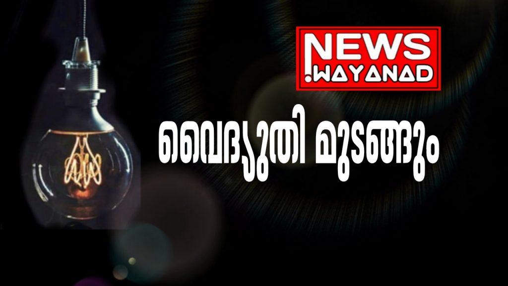 വെള്ളമുണ്ട ഇലക്ടിക്കൽ സെക്ഷനിലെ പത്താം മൈൽ, കോച്ചുവയൽ റോഡ്, കോച്ചുവയൽ ട്രാൻസ്ഫോർമർ പരിധിയിലെ പ്രദേശങ്ങളിൽ നാളെ (ബുധൻ) രാവിലെ 9 മുതൽ വൈകീട്ട് 5.30 വരെ വൈദ്യുതി മുടങ്ങും.