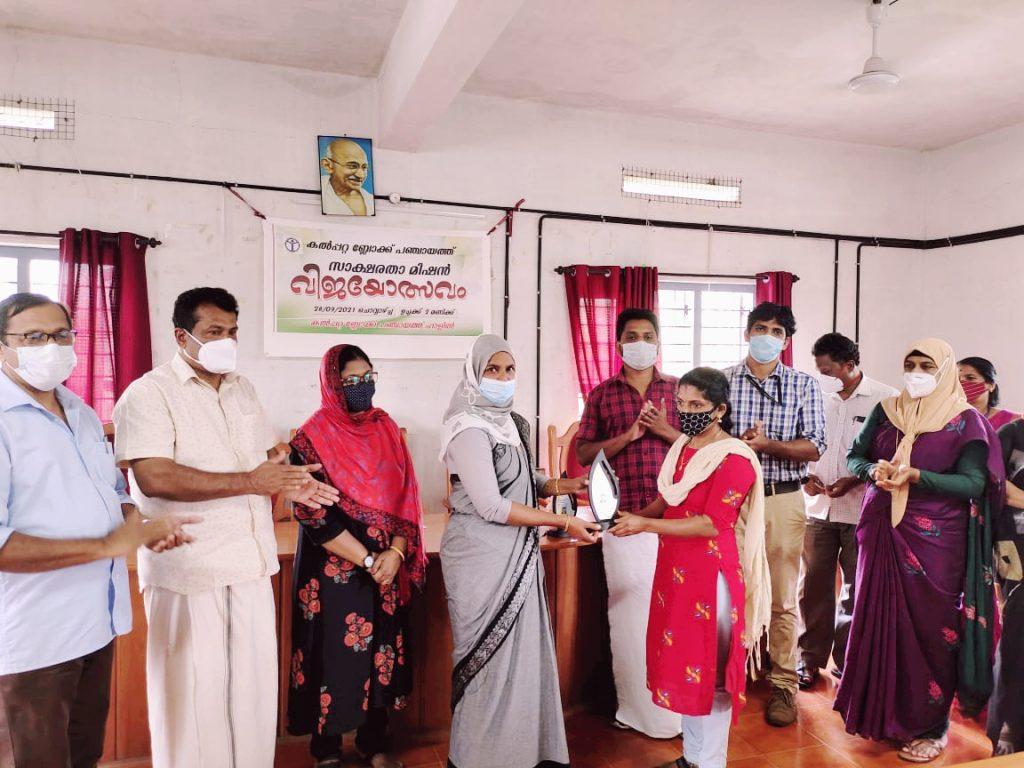 കല്പ്പറ്റ ബ്ലോക്ക് പഞ്ചായത്ത് സാക്ഷരതാ മിഷന് വിജയോത്സവത്തിന്റെ ഭാഗമായി ബ്ലോക്കിന് കീഴിലുള്ള പട്ടിക വര്ഗ്ഗ പഠിതാക്കളെ ആദരിച്ചു. നാലാം ബാച്ച് ഹയര് സെക്കന്ഡറി തുല്യതാ പരീക്ഷയില് ഉന്നത വിജയം നേടിയ പഠിതാക്കളെ ആദരിക്കുന്ന ചടങ്ങ് ബ്ലോക്ക് പഞ്ചായത്ത് പ്രസിഡന്റ് ടി.കെ നസീമ ഉദ്ഘാടനം ചെയ്തു. ബ്ലോക്ക് പഞ്ചായത്ത് വൈസ് പ്രസിഡന്റ് പി കെ അബ്ദുറഹിമാന് അധ്യക്ഷയായിരുന്നു. സംസ്ഥാന സാക്ഷരതാ മിഷന് അസി.ഡയറക്ടര് സന്ദീപ് ചന്ദ്രന് മുഖ്യപ്രഭാഷണം നടത്തി. സാക്ഷരതാ മിഷന് ജില്ലാ കോ-ഓര്ഡിനേറ്റര് സ്വയ നാസര് വിജയോത്സവ സന്ദേശം നല്കി. ആരോഗ്യ വിദ്യാഭ്യാസ സ്റ്റാന്റിംഗ് കമ്മിറ്റി ചെയര്മാര് ജഷീര് പള്ളിവയല്, ക്ഷേമകാര്യ സ്റ്റാന്ഡിങ് കമ്മിറ്റി ചെയര്പേഴ്സണ് അസ്മ കെ കെ, വികസനകാര്യ സ്റ്റാന്റിംഗ് കമ്മിറ്റി ചെയര്പേഴ്സണ് ചന്ദ്രിക കൃഷ്ണന്, ബ്ലോക്ക് പഞ്ചായത്ത് സെക്രട്ടറി സിറിയക് ടി കുര്യാക്കോസ്, ആയിഷാബി, അരുണ് ദേവ്, എല്പി ജോര്ജ് , ലക്ഷ്മി കേളു, രാഘവന് സി, അയിഷാബി, നോഡല് പ്രേരക്മാരായ ഗ്ലാഡിസ് ഷിബു ഗിരിജ പി വി തുടങ്ങിയവര് സംസാരിച്ചു.