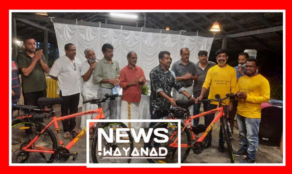 കൽപ്പറ്റ :പാവപെട്ട 5 കുടുംബ ങ്ങൾക്ക് വീടൊരുക്കുക എന്ന ലക്ഷ്യവുമായി വയനാട്ടിൽ നിന്നും ആൾ ഇന്ത്യാ സൈക്കിൾ ടൂർ നടത്താനായി യാത്ര തിരിച്ചനിജി നും, റെ നീഷിനും വയനാട് ജില്ലാ സൈക്ലിങ്ങ് അസോസിയേഷന്റെ നേതൃത്വത്തിൽ യാത്രയയപ്പ് നൽകി. ചെതലയം ഫോറസ്റ്റ് റെയിഞ്ച് ഓഫീസർ ശ്രീ. സമത് ഉത്ഘാടനം ചെയ്തു. ഡി.റ്റി.പി.സി മെമ്പർ സെക്രട്ടറി അജേഷ്. കെ.ജി. മുഖ്യതിഥി ആയിരുന്നു. വയനാട് ടൂറിസം ഓർഗനൈസേഷൻ സെക്രട്ടറി , സൈലേഷ് യാത്രക്കാവശ്യമായ ടെന്റുകൾ നൽകുകയുണ്ടായി. സ്പോർട്സ് കൗൺസിൽ വൈസ്. പ്രസിഡണ്ട് സലീം കടവൻ , വയനാട് ടൂറിസം ഓർഗനൈസേഷൻ പ്രസിഡണ്ട് വാഞ്ചീശ്വരൻ, ജില്ലാ സൈക്ലിങ് അസോസിയേഷൻ സെക്രട്ടറി സുബൈർ ഇള കുളം, സാജിദ് .എൻ.സി, അഷറഫ് ഗ്രീൻ ഗേറ്റ്സ് ബാബു വൈദ്യർ , ബിജു തോമസ്, മുഹമ്മത് സാജിദ് എന്നിവർ സംബന്ധിച്ചു