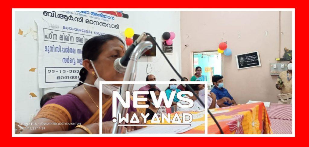 മാനന്തവാടി: സാക്ഷരതാ മിഷൻ മാനന്തവാടി നഗരസഭയിൽ കേന്ദ്ര സർക്കാർ പദ്ധതിയായ പഠ്ന ലിഖ്ന അഭിയാൻ സംഘാടക സമിതി രൂപീകരണം നടത്തി.സർവ്വെ വളണ്ടിയർ പരിശീലനം നഗരസഭ ചെയർപേഴ്സൺ സി.കെ.രത്നവല്ലി ഉദ്ഘാടനം ചെയ്യ്തു. സാക്ഷരത മിഷൻ അസിസ്റ്റൻ്റ് ഡയറക്ടർ സന്ദീപ് പദ്ധതി വിശദീകരണം നടത്തി. നഗരസഭ ഡെപ്യൂട്ടി ചെയർപേഴ്സൺ പി.വി.എസ്.മൂസ അദ്ധ്യക്ഷത വഹിച്ചു. അഡ്വ.സിന്ധു സെബാസ്റ്റ്യൻ, പി.വി. ജോർജ്ജ്, നഗരസഭ സാക്ഷരത പ്രേരക് ക്ലാരമ്മ, നോഡൽ പ്രേരക് മുരളീധരൻ, സാക്ഷരതാ ആദിവാസി നഗരസഭ കോഓഡിനേറ്റർ ഗ്രേയ്സി ജോർജ്ജ്, വി.ആർ.പ്രവീജ്, വിപിൻ വേണുഗോപൽ ലേഖ രാജീവൻ, ആലീസ്, റ്റിജി ജോൺസൺ എന്നിവർ സംസാരിച്ചു.