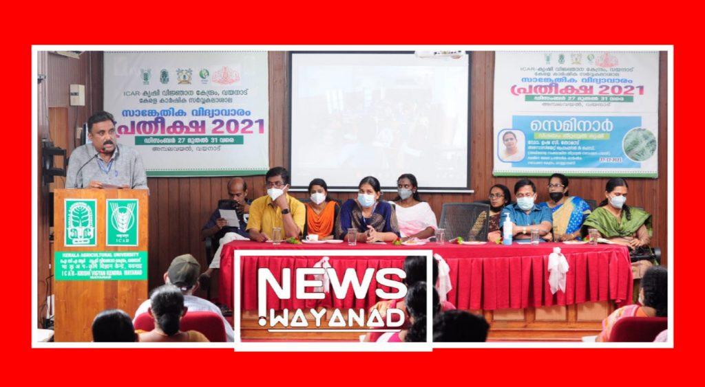 അമ്പലവയൽ:വയനാട് കൃഷി വിജ്ഞാന കേന്ദ്രവും ആത്മ വയനാടും കൃഷിവകുപ്പും സംയുക്തമായി ഡിസംബർ 27 മുതൽ 31 വരെ സംഘടിപ്പിക്കുന്ന സാങ്കേതിക വിദ്യാവാരം “പ്രതീക്ഷ” 2021 ന് തുടക്കമായി. അഞ്ച് ദിവസം നീളുന്ന പരിപാടിയിൽ വിവിധ സാങ്കേതിക സെമിനാറുകളും കർഷകരുടെ ഉൽപ്പന്നങ്ങളുടെ പ്രദർശനവും കിസാൻ മേളയും വിവിധ മത്സരങ്ങളും സംഘടിപ്പിക്കുന്നു. സങ്കേതിക വിദ്യാവാരത്തിന്റെ ഒന്നാം ദിനമായ തിങ്കളാഴ്ച്ച നടന്ന പരിപാടിയിൽ ഡോ .ഉഷ സി. തോമസ് (അസോസിയേറ്റ് പ്രൊഫസർ ആൻഡ് ഹെഡ് ,എ.ഐ.സി.ആർ.പി., ആർ.എ.ആർ .എസ് (SZ), വെള്ളായണി) തീറ്റപ്പുൽകൃഷി എന്ന വിഷയത്തിൽ ക്ലാസെടുത്തു. ഉച്ചയ്ക്ക് 2 മണിക്ക് വി.എച്ച്.എസ്.ഇ. വിദ്യാർത്ഥികൾക്കായുള്ള മത്സരങ്ങളും അന്താരാഷ്ട്ര ചെറുധാന്യ വർഷത്തോടനുബന്ധിച്ച് ചെറുധാന്യങ്ങൾ ഉപയോഗിച്ചുള്ള ഉൽപ്പന്നങ്ങളുടെ മത്സര പ്രദർശനവും നടത്തി. സങ്കേതിക വിദ്യാവാരത്തിന്റെ ഔദ്യോഗിക ഉദ്ഘാടന ചടങ്ങിൽ കൃഷി വിജ്ഞാന കേന്ദ്രം അസിസ്റ്റന്റ് പ്രൊഫസർ അഷിത എം. ആർ. സ്വാഗതപ്രസംഗവും കൃഷി വിജ്ഞാന കേന്ദ്രം മേധാവി ഡോ. അലൻ തോമസ് അദ്ധ്യക്ഷ പ്രസംഗവും നടത്തി. അമ്പലവയൽ ഗ്രാമപഞ്ചായത്ത് വൈസ് പ്രസിഡന്റ് കെ ഷെമീർ പരിപാടിയുടെ ഉദ്ഘാടനകർമം നിർവ്വഹിച്ചു. മീനങ്ങാടി കമ്മ്യൂണിറ്റി ഹെൽത്ത്‌ സെന്റർ മെഡിക്കൽ ഓഫീസർ ഡോ. കെ. പി. കുഞ്ഞിക്കണ്ണൻ അവർകൾ പ്രത്യേക പ്രഭാഷണം നടത്തി. അമ്പലവയൽ ഗ്രാമപഞ്ചായത്ത് ആറാം വാർഡ് മെമ്പർ ജെസ്സി ജോർജ്, വെള്ളായണി കാർഷിക കോളേജ് അസിസ്റ്റന്റ് പ്രൊഫസ്സർ ഡോ. ഫൈസൽ സി. കെ. എന്നിവർ ആശംസകൾ അർപ്പിച്ചു സംസാരിച്ചു. കെ. വി. കെ വയനാട് അസിസ്റ്റന്റ് പ്രൊഫസർ ഡോ. ദീപ റാണി സി. വി. നന്ദി അർപ്പിച്ചു.