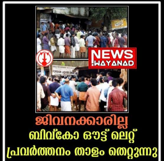 കൽപ്പറ്റ : മതിയായ ജീവനക്കാരില്ലാത്തതിനാൽ ജില്ലയിലെ ബീവ് കോ ഔട്ട് ലെറ്റുകളുടെ പ്രവർത്തനം താളം തെറ്റുന്നു.