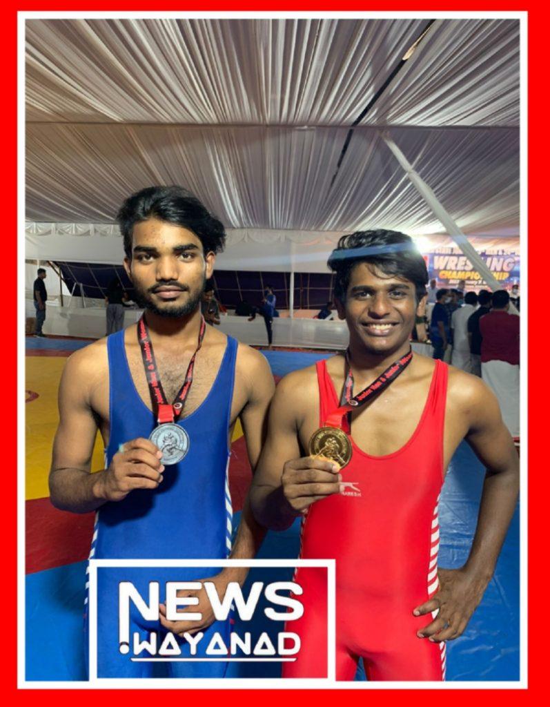 സംസ്ഥാന ഗുസ്തിയിൽ വയനാട് സ്വർണമെഡൽ നേടി അഭിലാഷും വെങ്കല മെഡൽ നേടി ഗോലുവും