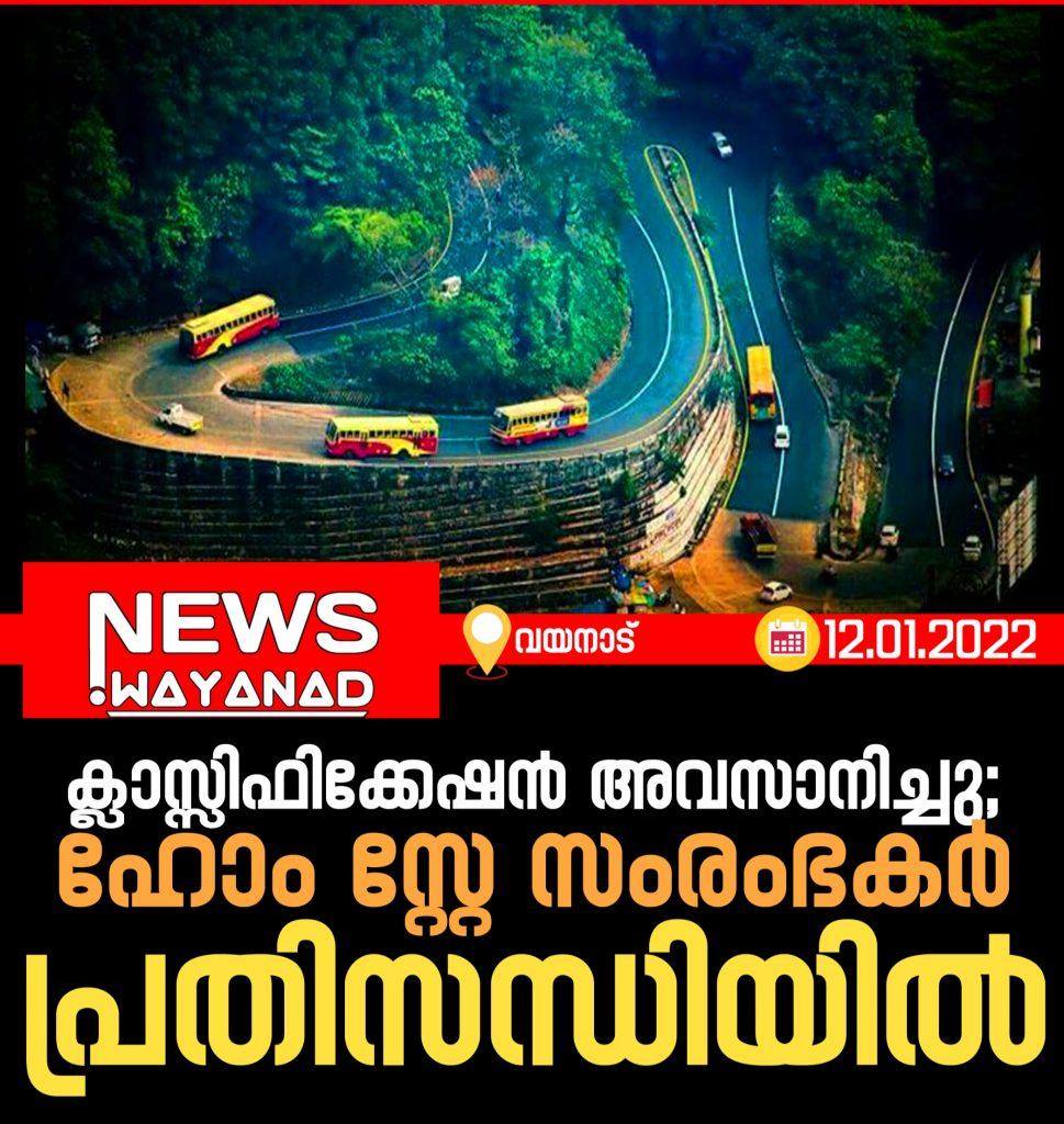 കൽപ്പറ്റ : ഡിസംബർ 31 ന് വിനോദ സഞ്ചാര മേഖലയായ ഹോം സ്റ്റേ സംരംഭകരുടെ ക്ലാസ്സിഫിക്കേഷൻ അവസാനിച്ചു. ഏറെ പ്രതീക്ഷയോടെ ഈ രംഗത്തേക്ക് വന്ന അനേകം