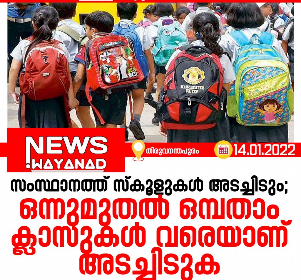 സംസ്ഥാനത്ത് സ്കൂളുകൾ വീണ്ടും അടച്ചിടും; ഒന്നുമുതൽ ഒമ്പതാം ക്ലാസുകൾ വരെയാണ് അടച്ചിടുക.