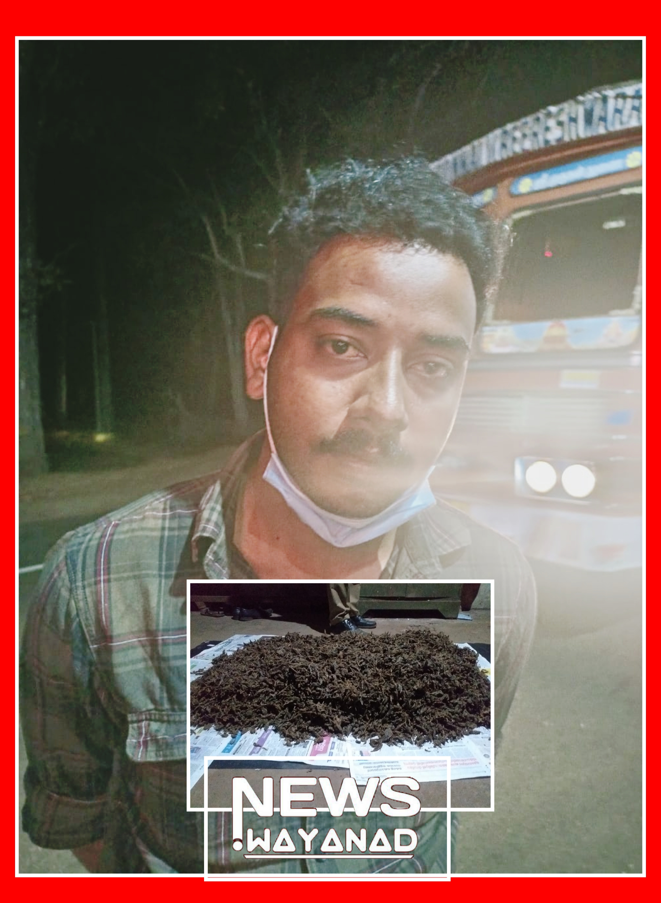 മലപ്പുറം എക്സൈസ് ഇന്റലിജൻസ്ബ്യൂറോയുടെ രഹസ്യവിവരത്തിന്റെ അടിസ്ഥാനത്തിൽ മുത്തങ്ങ എക്സൈസ് ചെക്പോസ്റ്റിസർക്കിൾ ഇൻസ്പെക്ടർ നിഗീഷ് ആർ ന്റെ നേതൃത്ത്വത്തിൽ മുത്തങ്ങ ചെക്ക് പോസ്റ്റ് എക്സൈസ് പാർട്ടി നടത്തിയ ശക്തമായ വാഹന പരിശോധനയിൽ KL06 H 4760 നമ്പർ ഇന്നോവകാറിൽ കടത്തികൊണ്ട് വന്ന 18.250 കിലോ കഞ്ചാവ് സഹിതം മലപുറം ജില്ലയിൽ ഏറനാട് താലൂക്ക് പാണ്ടിക്കാട് വില്ലേജിൽ കുന്നുമ്മൽ വീട്ടിൽ മുഹമ്മദ് ഹനീഫ മകൻ മുഹമ്മദ് മുബഷീർ( 28 വയസ്സ്) എന്നയാളെ അറസ്റ്റ് ചെയ്തു .