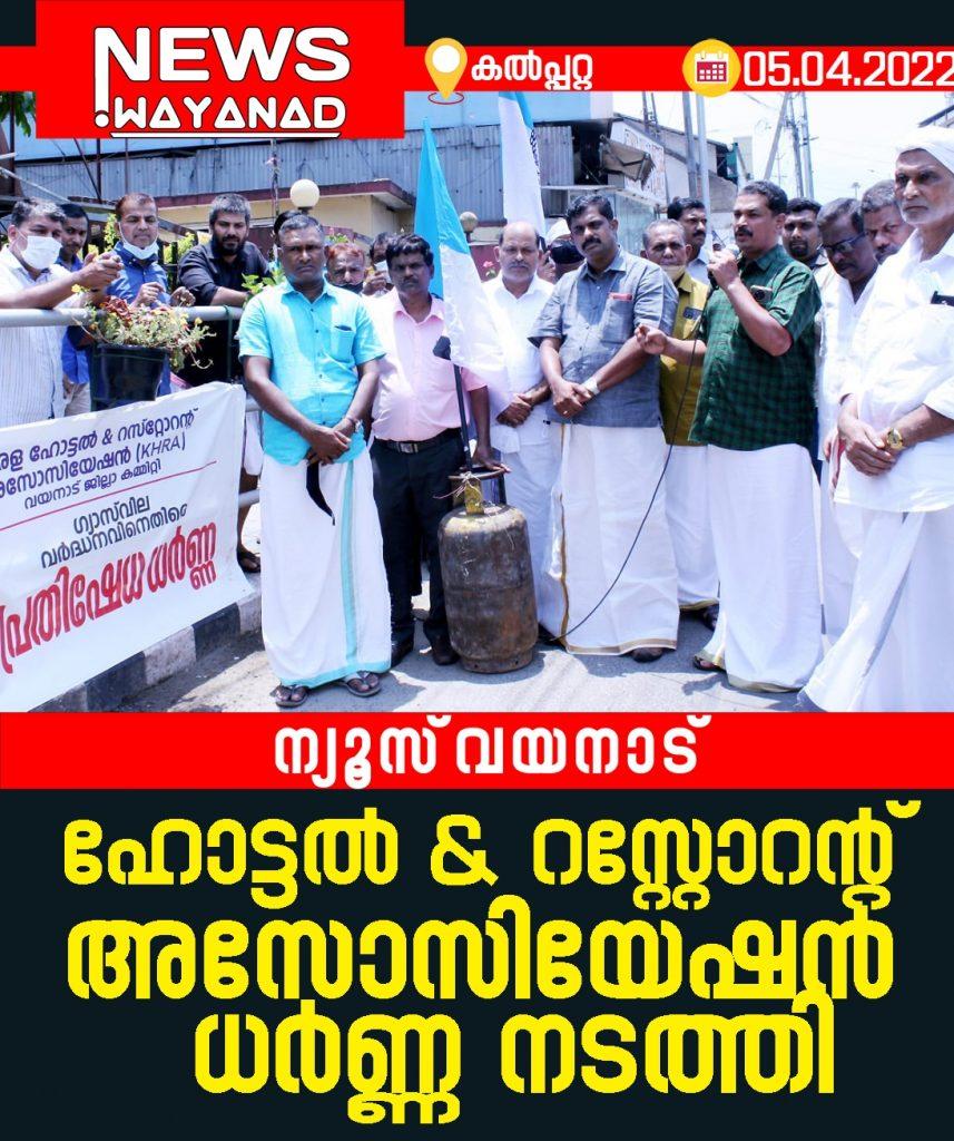കൽപ്പറ്റ : ഗ്യാസ് വിലവര്ധനവ് പിന്വലിക്കണം എന്നാവശ്യപ്പെട്ട് ഹോട്ടല് & റസ്റ്റോറന്റ് അസോസിയേഷന് (കെ എച്ച് ആർ എ ) വയനാട് ജില്ലാ കമ്മിറ്റിയുടെ നേതൃത്വത്തില് കല്പ്പറ്റ ടെലഫോണ് എക്സേ ഞ്ചിന് മുന്പില് ധര്ണ്ണ നടത്തി.