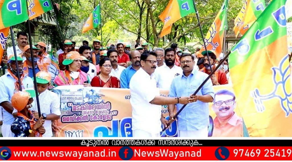 കൽപ്പറ്റ: വയനാട് മെഡിക്കൽ കോളേജ് ബോയ്‌സ് ടൗണിൽ സ്ഥാപിക്കാനുള്ള നീക്കത്തിനെതിരെ ബിജെപി കൽപ്പറ്റ മണ്ഡലം കമ്മിറ്റി പ്രതിഷേധ പദയാത്ര നടത്തി. പത്മപ്രഭാ ചാരിറ്റബിൾ സൊസൈറ്റി സൗജന്യമായി മടക്കിമലയിൽ നൽകിയ അമ്പത് ഏക്കർ ഭൂമിയിൽ തന്നെ മെഡിക്കൽ കോളേജ് സ്ഥാപിക്കണം എന്ന് ആവശ്യപ്പെട്ടു കൊണ്ടാണ് കൽപ്പറ്റ അയ്യപ്പ ക്ഷേത്രത്തിൽ നിന്ന് തുടങ്ങിയ യാത്ര മടക്കിമലയിലെ ഭൂമിയിൽ അവസാനിച്ചത്. പദയാത്ര നയിച്ച മണ്ഡലം പ്രസിഡന്റ് ടി.എം. സുബീഷിന് പതാക കൈമാറിക്കൊണ്ട് ബിജെപി ജില്ല അദ്ധ്യക്ഷൻ കെ.പി. മധു യാത്ര ഉദ്ഘാടനം ചെയ്തു. മേപ്പാടിയിലെ സ്വകാര്യ മെഡിക്കൽ കോളേജ് അധികൃതരും ഇടതുപക്ഷ നേതൃത്വവും തമ്മിലുണ്ടാക്കിയ അവിശുദ്ധ ധാരണയാണ് മെഡിക്കൾ കോളജ് കണ്ണൂർ അതിർത്തിയായ ബോയിസ് ടൗണിൽ മെഡിക്കൽ കോളേജിലേക്ക് മാറ്റാൻ കാരണം. ഇത് ഒരു കാരണവശാലും അനുവദിക്കാനാവില്ലെന്നും തുടർ സമര പരിപാടികളിലൂടെ ഈ തീരുമാനം പുനപരിശോധിക്കുന്ന സാഹചര്യം സൃഷ്ടിക്കുമെന്നും യാത്ര ഉദ്ഘാടനം ചെയ്തു കൊണ്ട് കെ.പി.മധു പറഞ്ഞു. പി.എം. അരവിന്ദൻ, ഷാജിമോൻ ചൂരൽമല, ശിവദാസൻ വിനായക, എം.ശാന്തകുമാരി, രാമചന്ദ്രൻ ആരോട, സിന്ധു നെടുങ്ങോട്, സിന്ധു ആയിരവീട്ടിൽ, രാധാകൃഷ്ണൻ ചേളേരി തുടങ്ങിയവർ സംബന്ധിച്ചു.