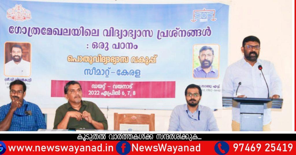 ബത്തേരി : ഗോത്ര വിദ്യാഭ്യാസമേഖലയിലെ പ്രശ്നങ്ങളെക്കുറിച്ചുള്ള സംസ്ഥാനതല പഠനത്തിന്റെ ഭാഗമായി സീമാറ്റ് കേരളയുടെയും ഡയറ്റിന്റെയും നേതൃത്വത്തില് ബത്തേരിയില് ശില്പശാല സംഘടിപ്പിച്ചു. ഡയറ്റ് കോണ്ഫറന്സ് ഹാളില് സീമാറ്റ് ഡയറക്ടര് ഡോ.എച്ച് സാബു ഉദ്ഘാടനം ചെയ്തു. വയനാട് ഡയറ്റ് പ്രിന്സിപ്പാള് ഡോ: ടി.കെ അബാസലി അദ്ധ്യക്ഷത വഹിച്ചു. വിദ്യാലയങ്ങളില് നിന്നുള്ള ഗോത്ര വിദ്യാര്ഥികളുടെ അമിതമായ കൊഴിഞ്ഞുപോക്ക്, വിദ്യാര്ഥികള് നേരിടുന്ന സാമൂഹിക, സാംസ്ക്കാരിക വെല്ലുവിളികള് എന്നീ വിഷയങ്ങളെ ആസ്പദമാക്കി ശില്പശാലയില് ചര്ച്ച നടന്നു. ഗ്രൂപ്പുകളായി തിരിച്ചാണ് ചര്ച്ചകള് സംഘടിപ്പിച്ചത്. ആദിവാസി വിദ്യാഭ്യാസ മേഖലയില് നടപ്പില് വരുത്തേണ്ട ആസൂത്രണങ്ങളെക്കുറിച്ചും പാഠ്യ പാഠ്യേതര വിഷയങ്ങളെക്കുറിച്ചും ശില്പശാലയില് ചര്ച്ച നടന്നു.