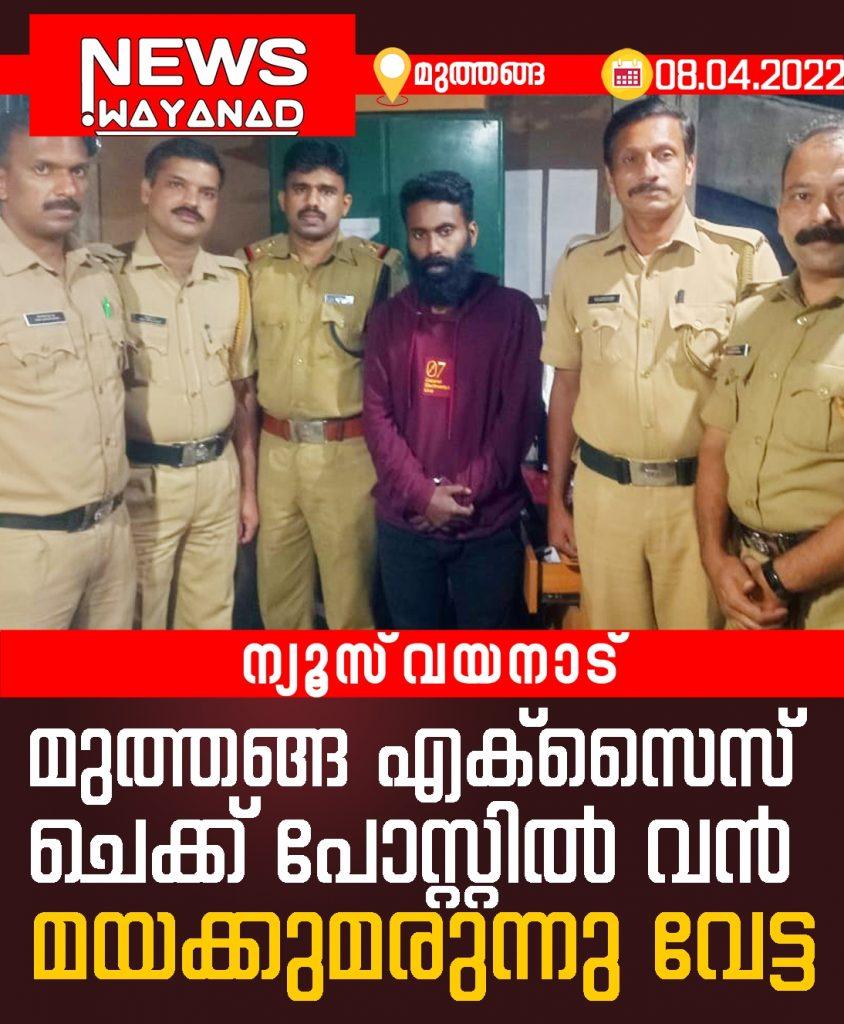 മുത്തങ്ങ എക്സൈസ് ചെക്ക് പോസ്റ്റിൽ വൻ മയക്കുമരുന്നു വേട്ട