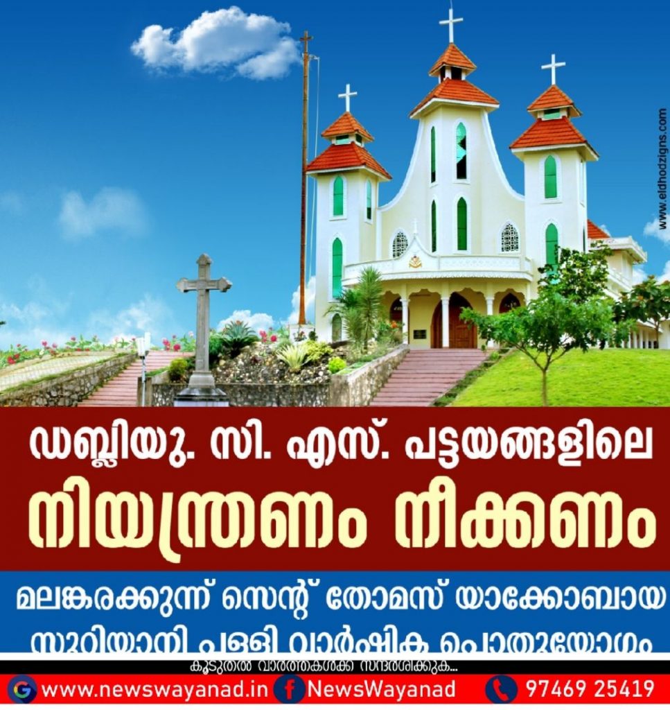 ബത്തേരി: വയനാട് കോളനൈസേഷന് സ്കീം ചട്ടങ്ങള് പ്രകാരം പട്ടയം നല്കിയ ഭൂമിയില് പാര്പ്പിടേതര കെട്ടിടം നിര്മ്മിക്കുന്നതിന് ഏര്പ്പെടുത്തിയ നിയന്ത്രണം നീക്കുന്നതിന് സര്ക്കാര് തലത്തില് അടിയന്തിര നടപടി സ്വീകരിക്കണമെന്ന് മലങ്കരക്കുന്ന് സെന്റ് തോമസ് യാക്കോബായ സുറിയാനി പള്ളി വാര്ഷിക പൊതുയോഗം ആവശ്യപ്പെട്ടു. നിയന്ത്രണം മൂലം സാധാരണക്കാരായ ആളുകള്ക്ക് ഒരു തൊഴുത്തുപോലും നിര്മ്മിക്കുന്നതിന് സാദ്ധ്യമല്ലാത്ത സ്ഥിതിയുള്ളതായി യോഗം ചൂണ്ടിക്കാട്ടി. വികാരി ഫാ.മത്തായികുഞ്ഞ് ചാത്തനാട്ടുകുടി അദ്ധ്യക്ഷനായിരുന്നു. അഡ്വ.ഷിജു ജേക്കബ്ബ് കുറുങ്ങാട്ടില് പ്രമേയം അവതരിപ്പിച്ചു. സ്കറിയ ചൂണത്ത് പിന്താങ്ങി. വാര്ഷിക പൊതുയോഗത്തില് പള്ളിയുടെ പുതിയ ഭാരവാഹികളെ തിരഞ്ഞെടുത്തു.
