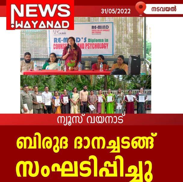 നടവയൽ എവർഗ്രീൻ വില്ലയിൽ വച്ചു നടന്ന ചടങ്ങിൽ റിമൈന്റ് ഡയറക്ടർ ഗിരീഷ് കുമാർ അധ്യക്ഷതവഹിക്കുകയും സ്ഥാപനത്തിന്റെ സംസ്ഥാന തല പ്രവർത്തനങ്ങൾ വിശദീകരിക്കുകയും ചെയ്തു.ചടങ്ങ് ഉദ്ഘാടനം ചെയ്ത ഐ സി ഡി എസ് പ്രൊജക്ട് ഓഫീസർ കാർത്തിക അന്ന തോമസ്, ശിശുക്കളുടെയും കൗമാരക്കാരുടെയും മാനസിക ആരോഗ്യരംഗത്ത് കൂടുതൽ അവബോധം സൃഷ്ടിക്കേണ്ട ആവശ്യകത ഊന്നിപ്പറഞ്ഞു. റി- മൈന്റ് ഡയറക്ടർ നിരഞ്ജന വയനാട് സെന്റെറിൽ നിന്നും കോഴ്സ് പൂർത്തിയാക്കിയിറങ്ങുന്ന റിമൈന്റിന്റെ ലൈഫ് കോച്ചുമാർ അവരുടെ മുന്നോട്ടുള്ള പ്രയാണം ഏത് രീതിയിൽ ആവണം എന്ന് ധരിപ്പിച്ചു. 2020-21 വർഷത്തെ ഏറ്റവും മികച്ച ഐ സി ഡി എസ് ഓഫീസർ ക്കുള്ള സംസ്ഥാന അവാർഡ് കരസ്ഥമാക്കിയ കാർത്തികയെ ചടങ്ങിൽ ആദരിച്ചു.