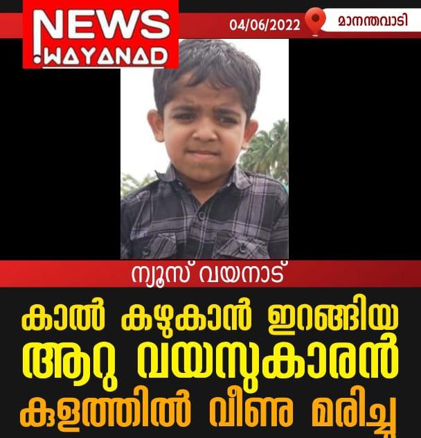 കാൽ കഴുകാൻ ഇറങ്ങിയ ആറു വയസുകാരൻ കുളത്തിൽ വീണു മരിച്ചു.
