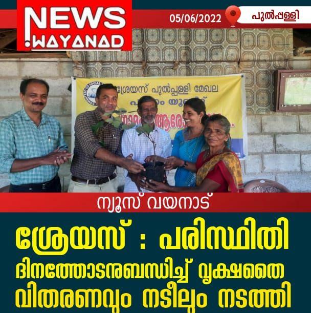 ശ്രേയസ് : പരിസ്ഥിതി ദിനത്തോടനുബന്ധിച്ച് വൃക്ഷതൈ വിതരണവും നടീലും നടത്തി