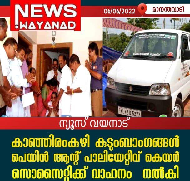 കാഞ്ഞിരംകുഴി കുടുംബാംഗങ്ങള് പെയിന് ആന്റ് പാലിയേറ്റീവ് കെയര് സൊസൈറ്റിക്ക് വാഹനം നല്കി